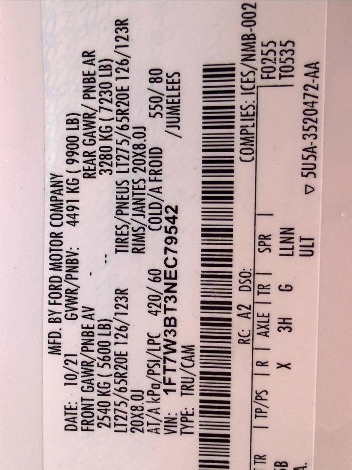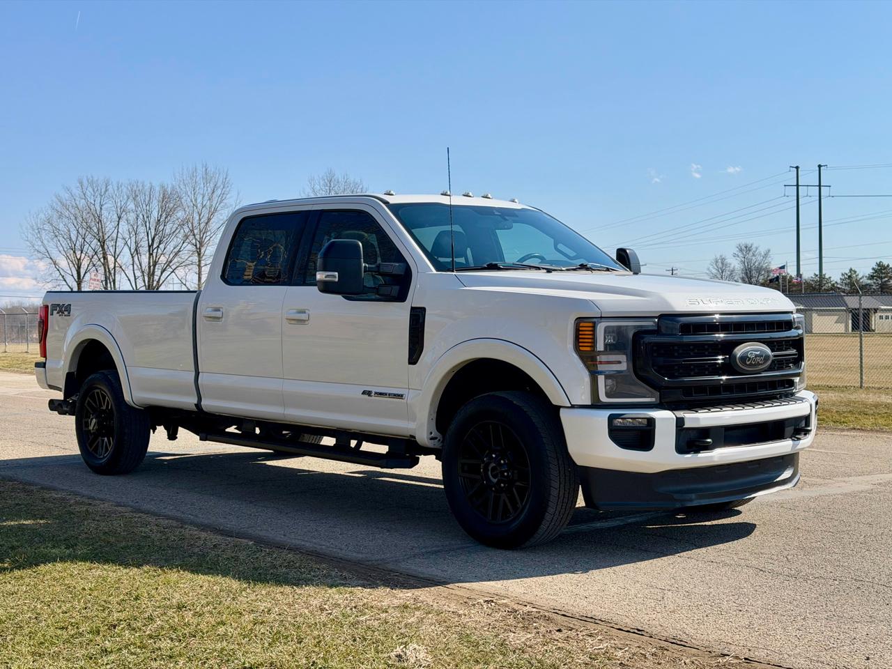 1-TON LONG BED LOADED UP POWERSTROKE!!! 2022 FORD F-350 LARIAT 4X4, 6.7L POWERSTROKE DIESEL, 10-SPEED AUTO, STAR WHITE (PEARL WHITE), BUCKET SEATS, POWER SEATS, MEMORY DRIVER SEAT, POWER EXTEND AND FOLD MIRRORS, ADJUSTABLE FOOT PEDALS, 12 RADIO DISPALY, BACK UP CAMERA, BLUETOOTH AND CARPLAY, 3.31 E-LOCKING REAR DIFF, BRAKE CONTROLLER, 110V OUTLET, HEATED AND COOLED SEATS, REMOTE START, PANORAMIC SUNROOF, UPFITTER SWITHCES, POWER SLIDING REAR WINDOW, REAR HEATED SEATS, TAILGATE STEP, SPRAY IN LINER, 5TH WHEEL PREP, FX4 PACKAGE, BLACK APPEARANCE PACKAGE, 20IN WHEELS, CAB LIGHTS, LED LIGHTS, RUNNING BOARDS, WE'VE SERVIED THE TRUCK WITH THE FOLLOWING; OIL CHANGE, AIR FILTER, FUEL FILTERS, 23+ CCV, NEW BRAKES AND ROTORS (BOTH AXLES), 4 NEW SHOCKS, THE TRUCK IS READY TO WORK!!!!